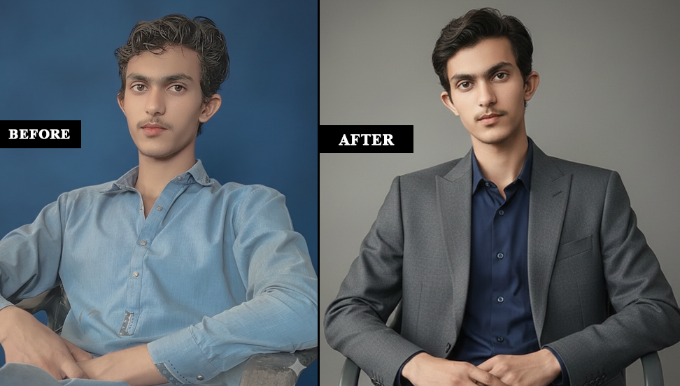 Prompt: Take the uploaded photo of the person and completely transform them into a sharp, high-fashion look with a perfectly tailored black suit and matching pants and shirt, sleek modern design. Pose them standing with confident, boss-like attitude, one hand in pocket, slight smirk, showing style and charisma. Realistic lighting, ultra high-resolution, cinematic quality, perfect shadows and highlights on the suit. Background: subtle luxury vibe (like blurred modern office, rooftop cityscape, or classy minimalist studio) to emphasize their style. Make the textures of fabric and skin realistic, ensure natural posture, realistic proportions, and overall photorealistic look with attitude.